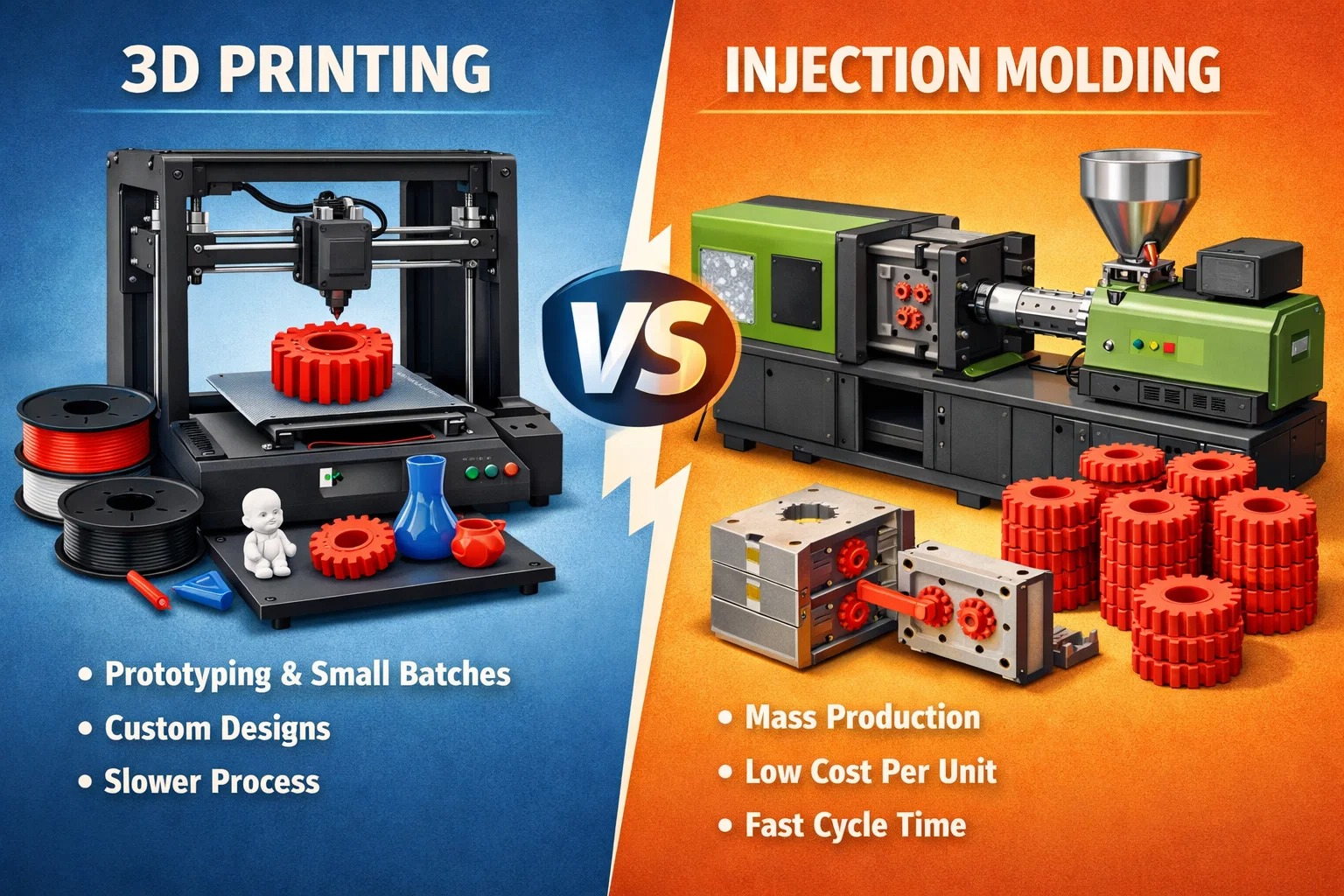 اکثر مردم فکر می کنند که این یک انتخاب ساده بین "مدرسه جدید" (چاپ سه بعدی) و "مکتب قدیمی" (مدلینگ تزریقی) است. اما صادقانه؟ دیگر به ندرت آنقدر سیاه و سفید است.