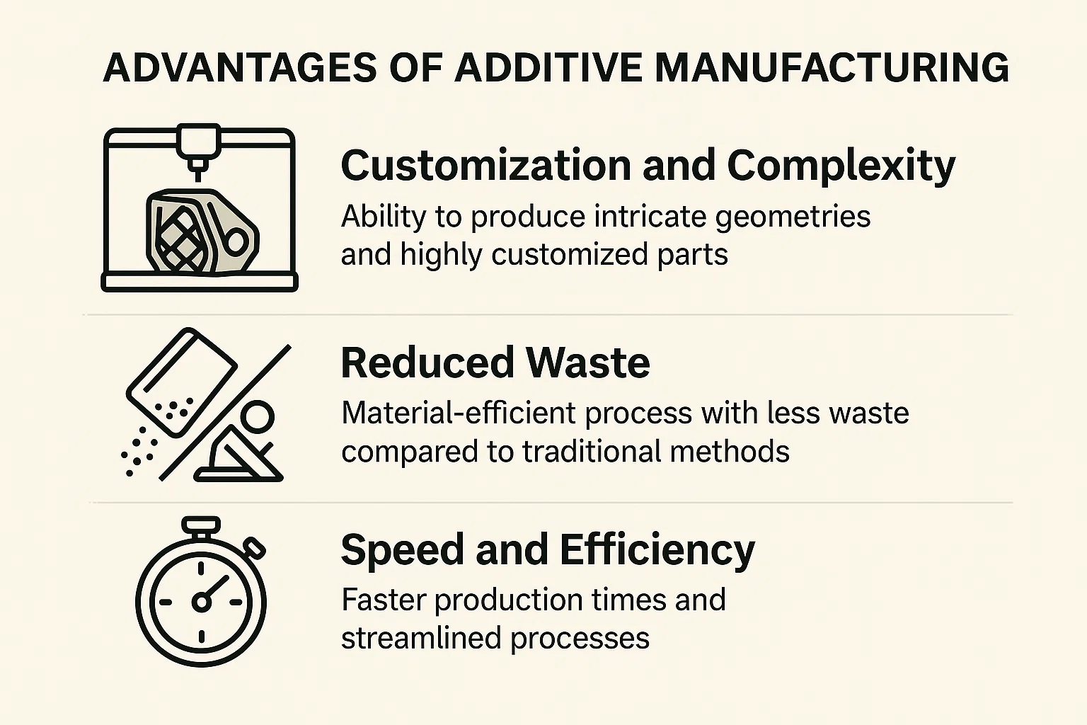 تولید افزودنی از نظر زمان بندی تولید ، به ویژه برای قطعات پیچیده یا سفارشی ، مزایای قابل توجهی را ارائه می دهد.