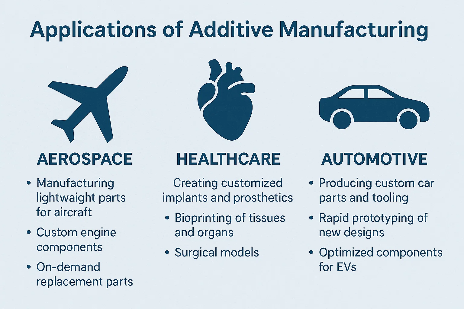 قابلیت های منحصر به فرد تولید افزودنی ، به ویژه توانایی آن در ایجاد هندسه های پیچیده ، استفاده از مواد با کارایی بالا و تسهیل سفارشی ، منجر به پذیرش تحول آمیز آن در طیف گسترده ای از صنایع شده است. این دیگر فقط یک ابزار نمونه سازی نیست بلکه یک روش مناسب برای تولید مؤلفه های مهم و مهم و بسیار تخصصی است.