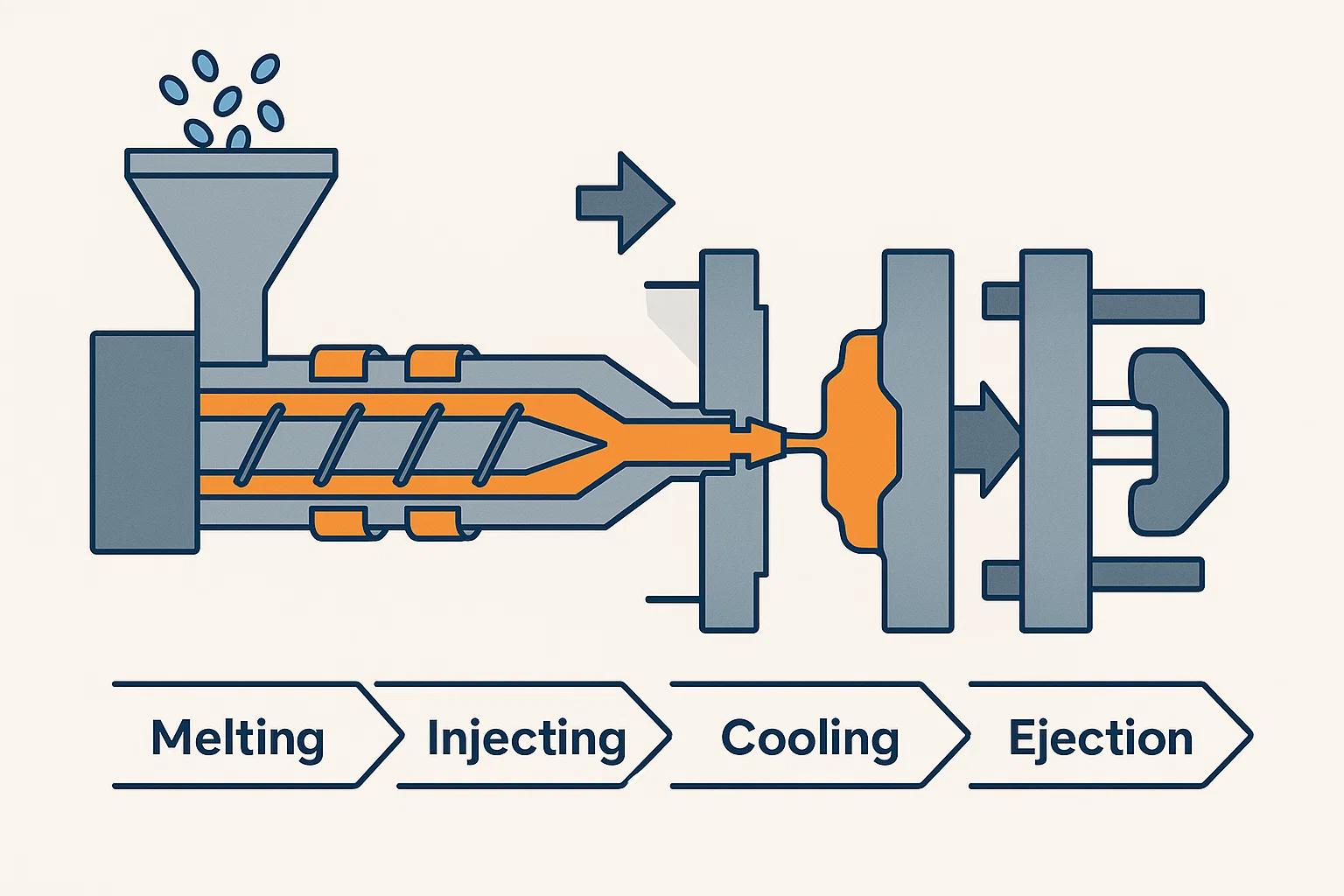 روند قالب گیری تزریق یک دنباله دقیق و چرخه ای را دنبال می کند: