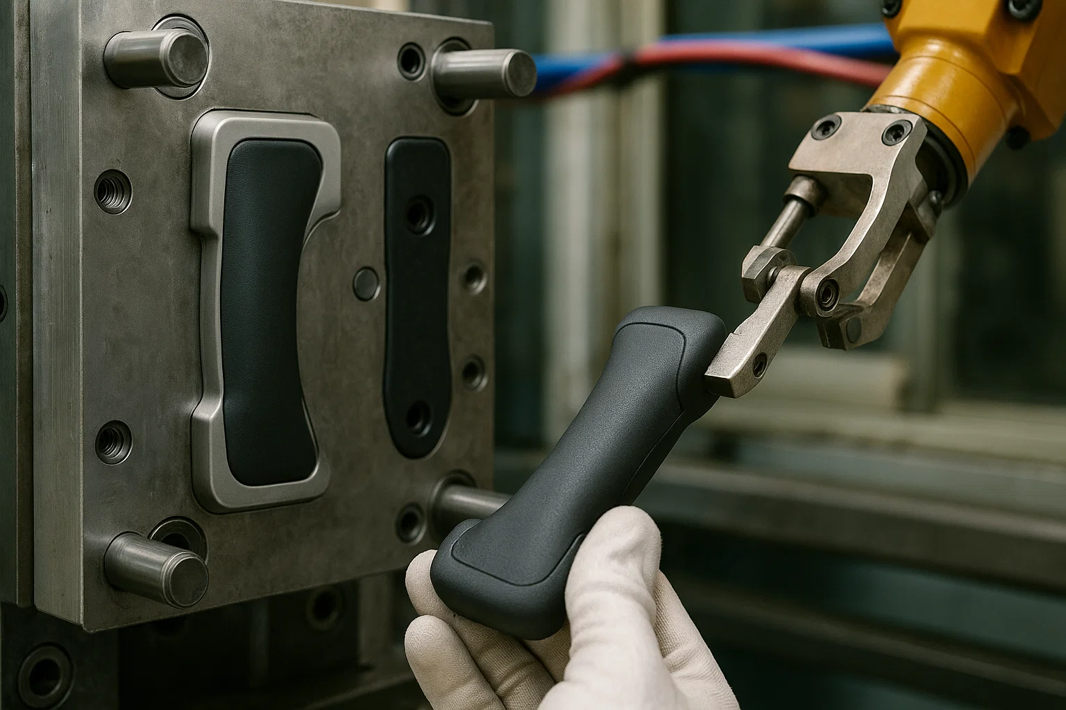 کاهش هزینه های مونتاژ: با ادغام چندین ماده در یک فرآیند واحد ، عملیات ثانویه مانند چسباندن ، چسباندن یا مونتاژ دستی دستگیره به حداقل می رسد یا از بین می رود.