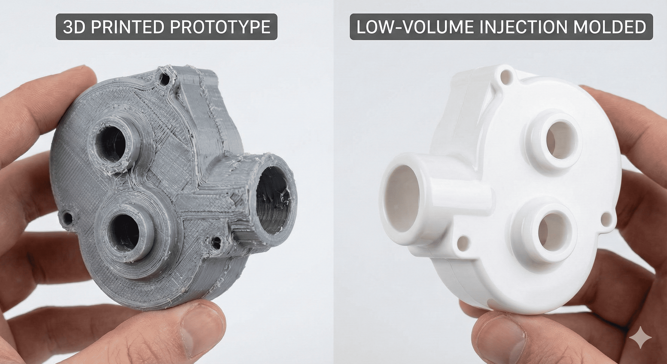 - نتیجه: آنها 10000 دستگاه اول را با استفاده از این ابزار "نرم" تولید کردند. هنگامی که محصول موفقیتآمیز بود و طراحی قفل شد، آنها در نهایت روی ابزارهای تولید فولاد "سنگین" سرمایهگذاری کردند.