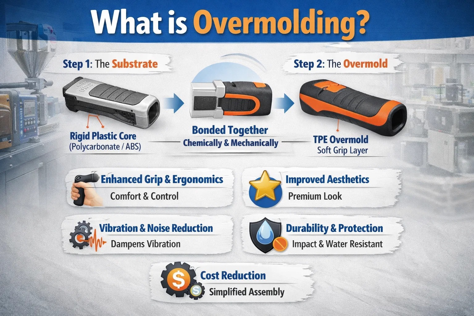قالب گیری بیش از حد یکی از مؤثرترین راه ها برای ارتقای محصول شما از «عملکردی» به «پیدر بازار» است. یک محفظه پلاستیکی ساده را به دستگاهی بادوام، ارگونومیک و درجه یک تبدیل می کند.